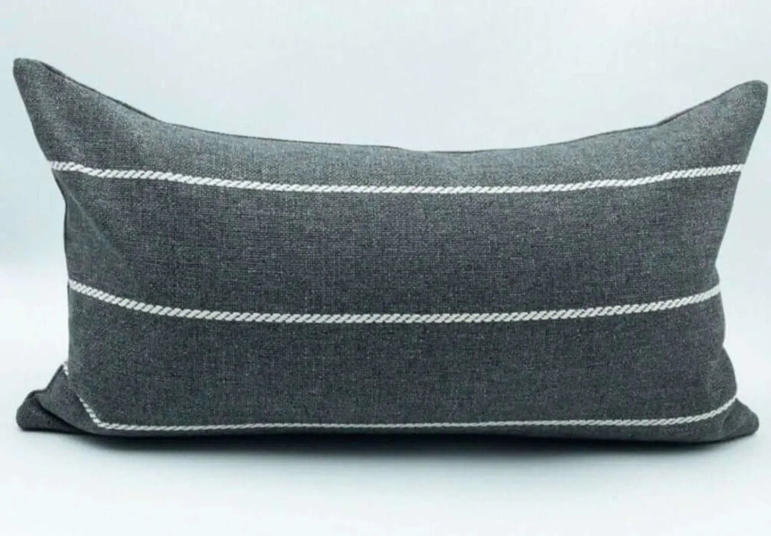 This indoor/ outdoor textured striped pillow in grey charcoal and white is a timeless classic. With a textured rope striping it will add subtle detail to your patio, porch or deck. Or bring it indoors, with the neutral color palette you can easily transition with your current design.