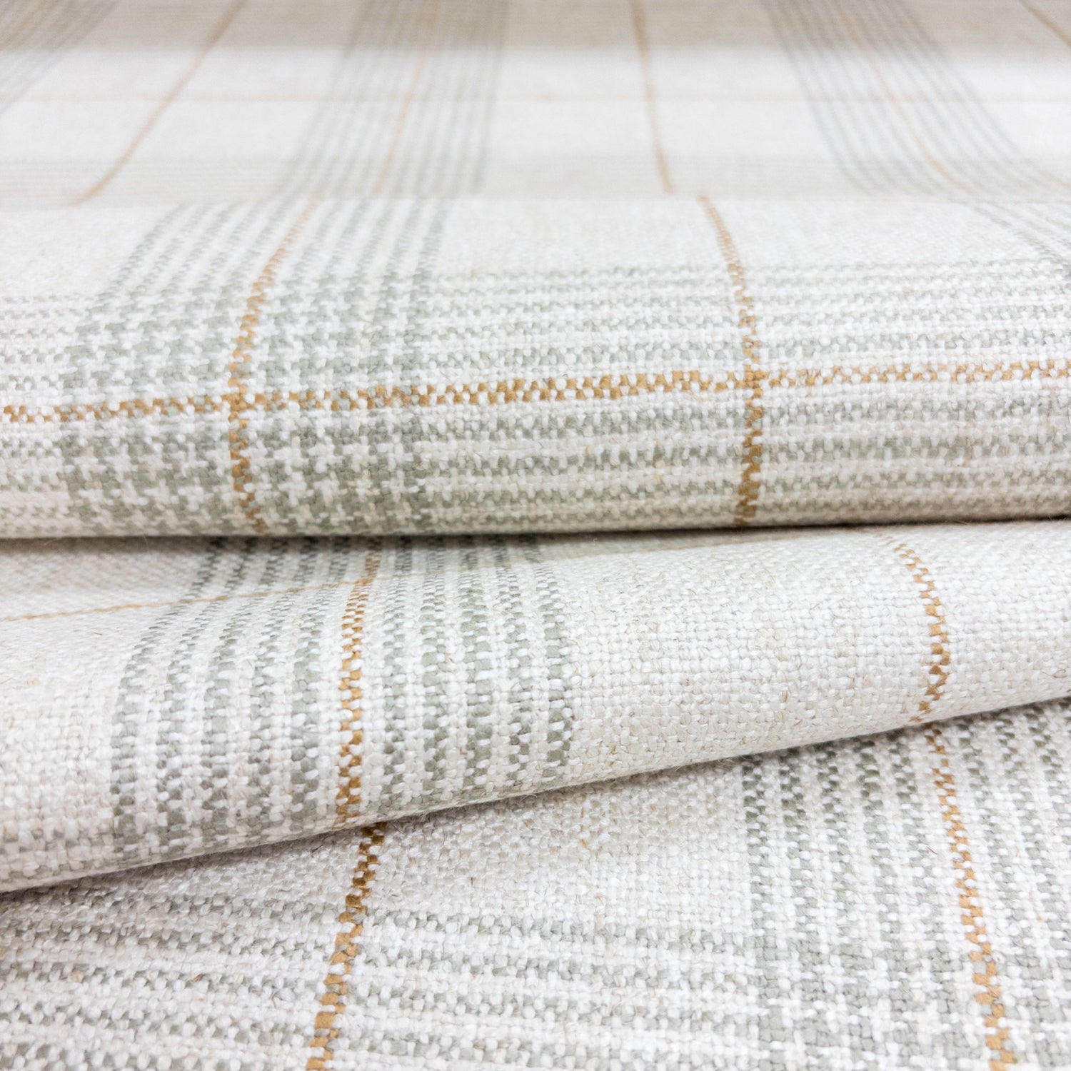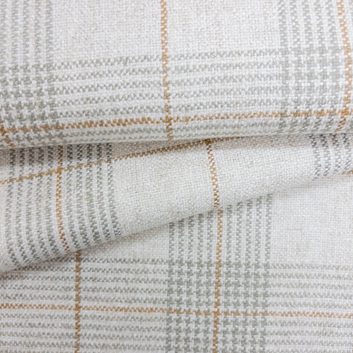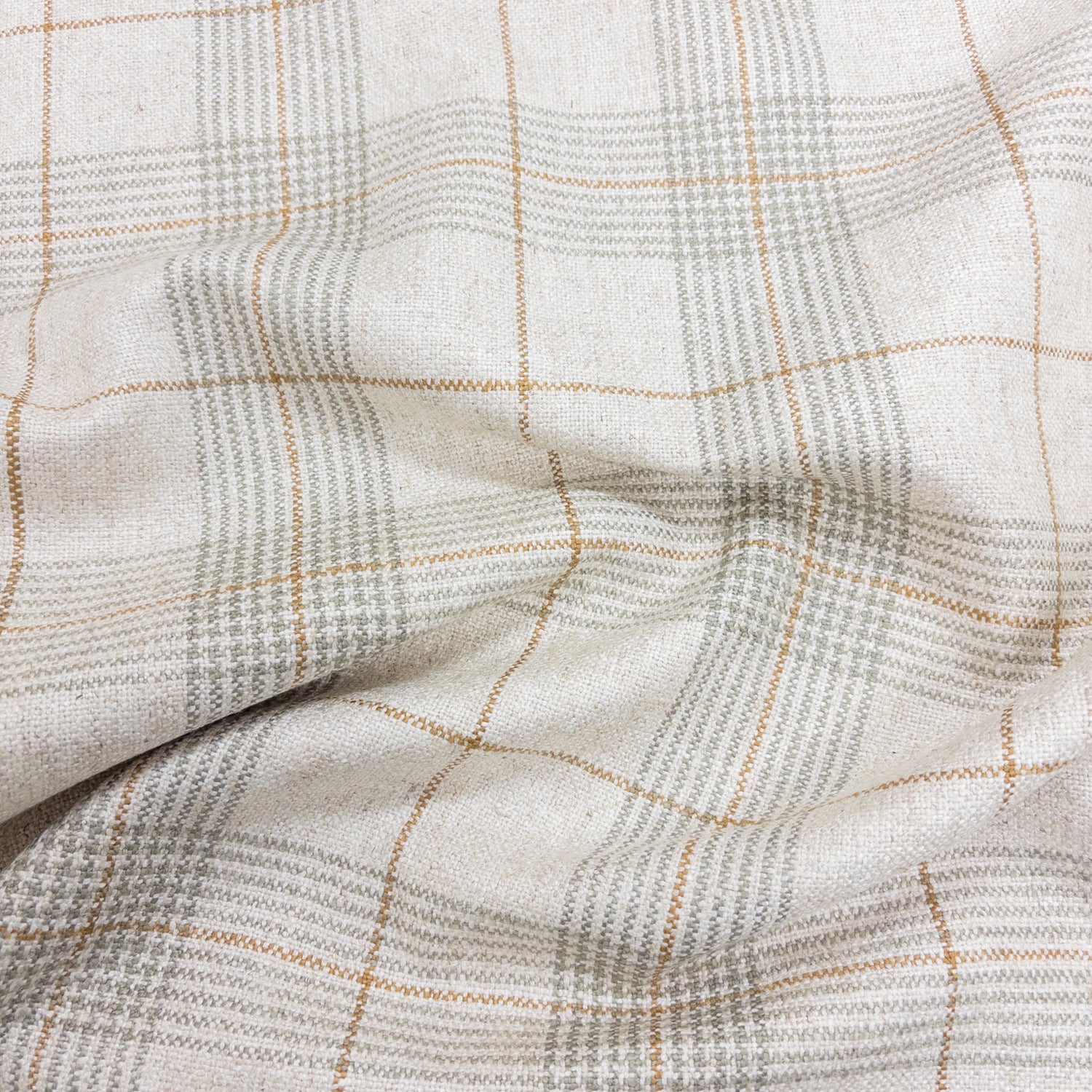 Heritage-inspired and beautifully timeless. The Daine Plaid Fabric in Jade Green blends soft sage and golden threading against a warm, natural base to create a refined yet relaxed look. With its classic windowpane pattern and soft, textured hand-feel, this fabric brings a sense of quiet charm to any space—whether used for custom pillows, drapery, or upholstery.