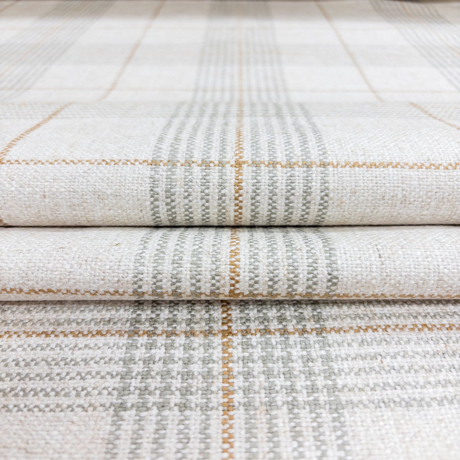 Color: Natural base with soft jade green and golden plaid lines